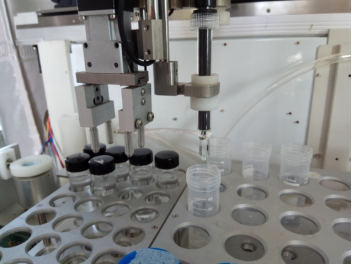 取样单元为X/Y/Z三维直线运动机构,安装有浊度取样机械手、样品针、试剂针。浊度取样机械手可自动抓取和传送浊度样品杯,样品针和试剂针用来吸取比色反应所需的样品和试剂。
